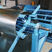 Cuộn đỡ tole luôn cố định các cuộn vật liệu trong quá trình xả cuộn, được thiết kế để thuận tiện cho việc điều chỉnh kích thước của các loại vật liệu khác nhau. Hệ thống cố định vật liệu được cấu tạo từ thép SKD được tôi luyện và xử lý nhiệt tạo nên sức bền và sự ổn định; bao gồm 4 cuộn, mỗi cuộn có sức tải 5000kg. Nó được trang bị Motor PARMA 1100W, bộ giảm tốc, hệ thống điều khiển điện tử để nhận biết việc nhả cuộn hay thu cuộn. Bề mặt tấm kim loại có tác dụng bảo vệ rất tốt để tránh những thiệt hại của hiện tượng gờ máy.