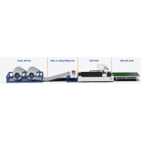 Máy cắt Laser Fiber dòng TA tích hợp quy trình tự động, cuộn tôn, nắn thẳng, cắt và đưa phôi cắt ra ngoài tự động.