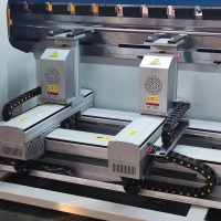 • Thiết kế dừng đồng bộ linh hoạt cho phép máy uốn tấm cnc đạt được độ chính xác cao và dễ sử dụng nhờ bộ điều khiển lập trình DELEM.